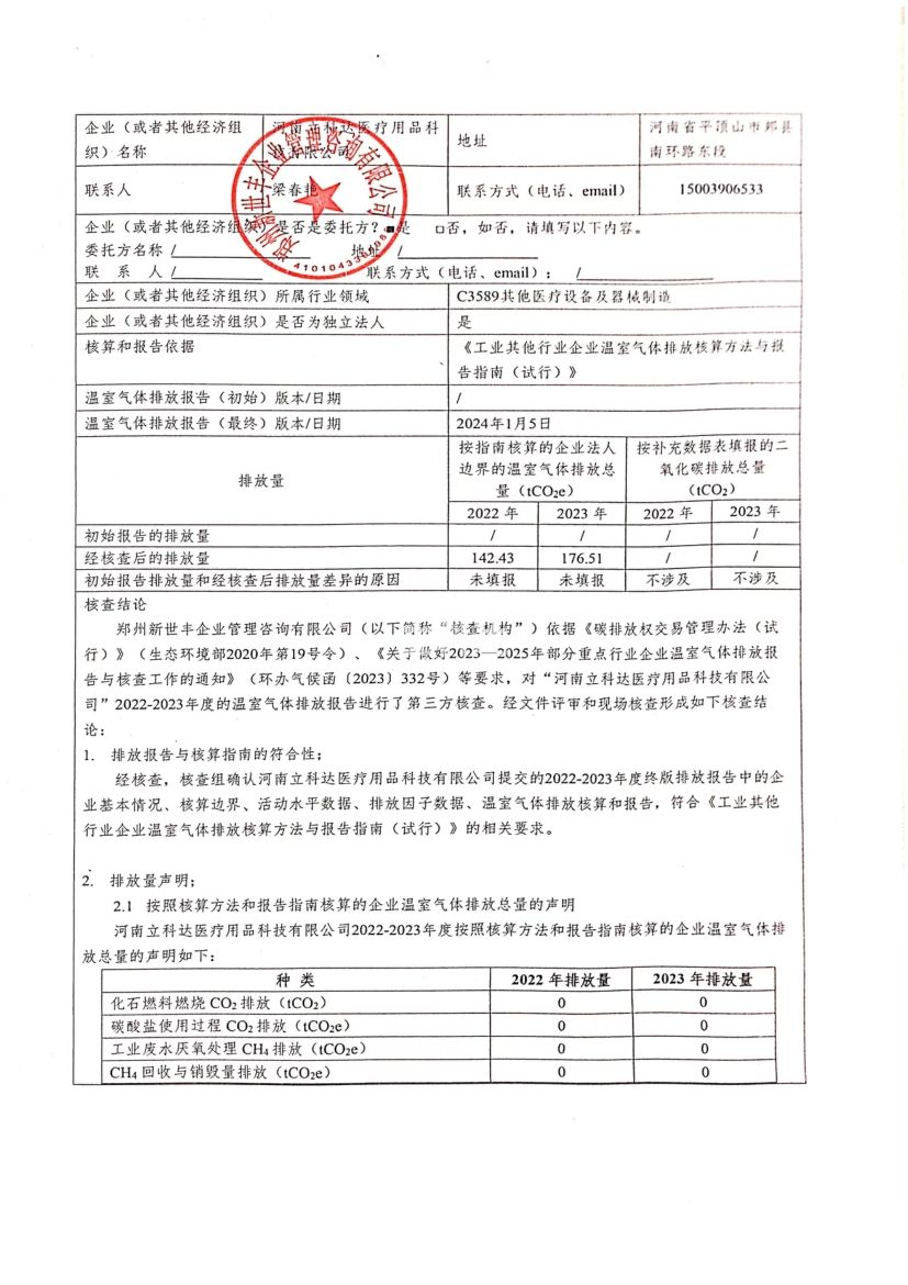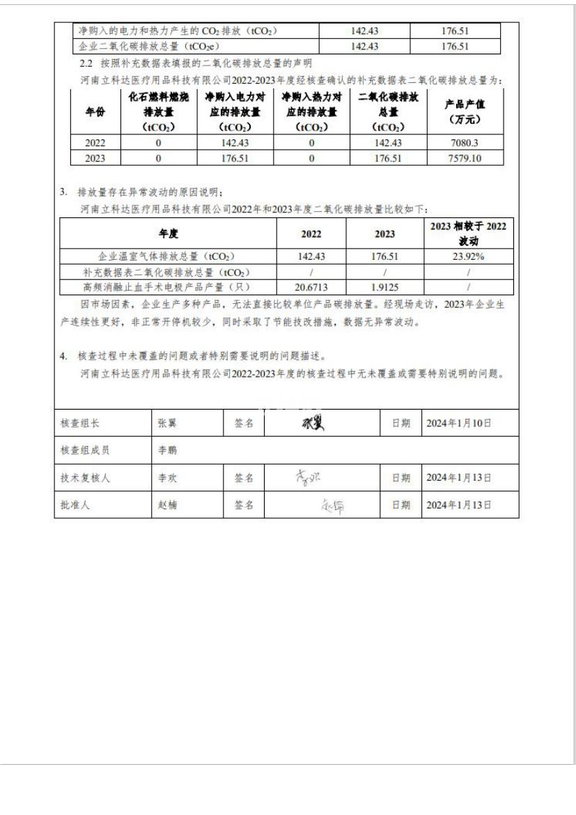 河南立科达消融止血手术电极产品碳足迹报告